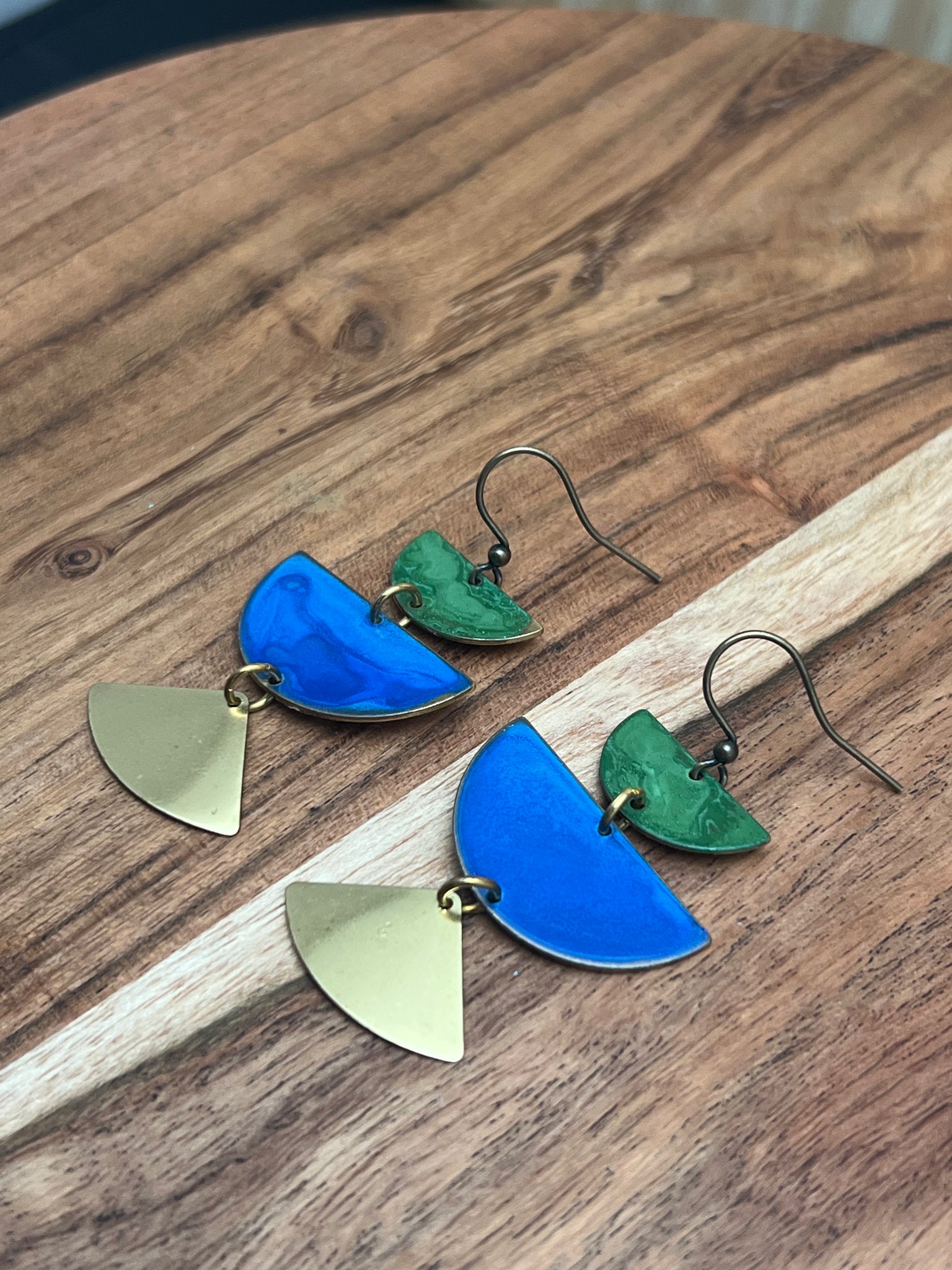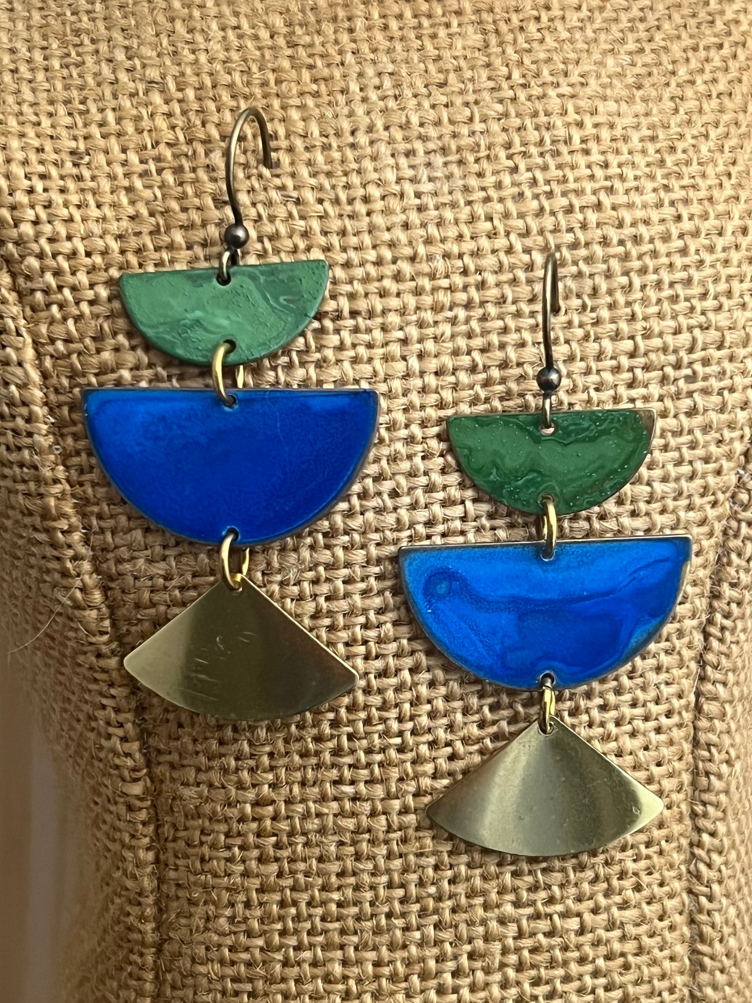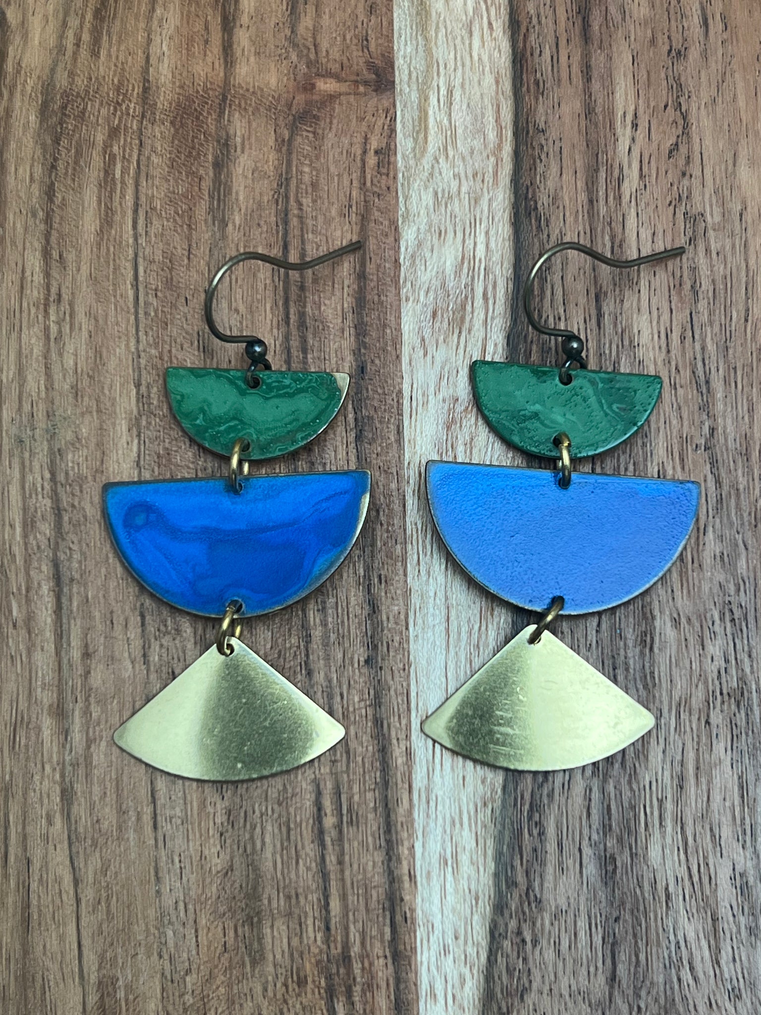 Cobalt and sage patina, 2 inches length antique brass ear hooks